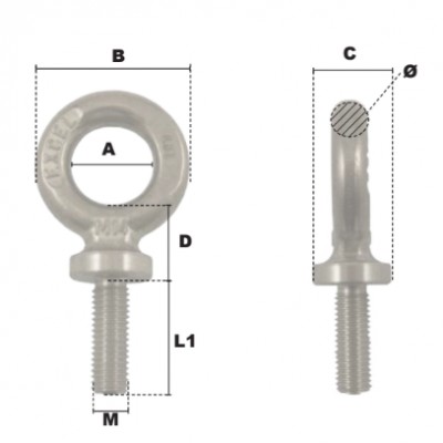 Anneau de levage à tige longue inox - 200 à 1000 kg