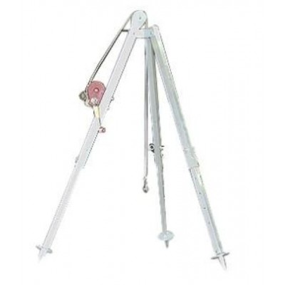 Tripode léger en aluminium de série DW équipé d'un treuil galvanisé freiné avec câble acier et crochet à émerillon, de capacité de charge jusqu’à 500 kg.